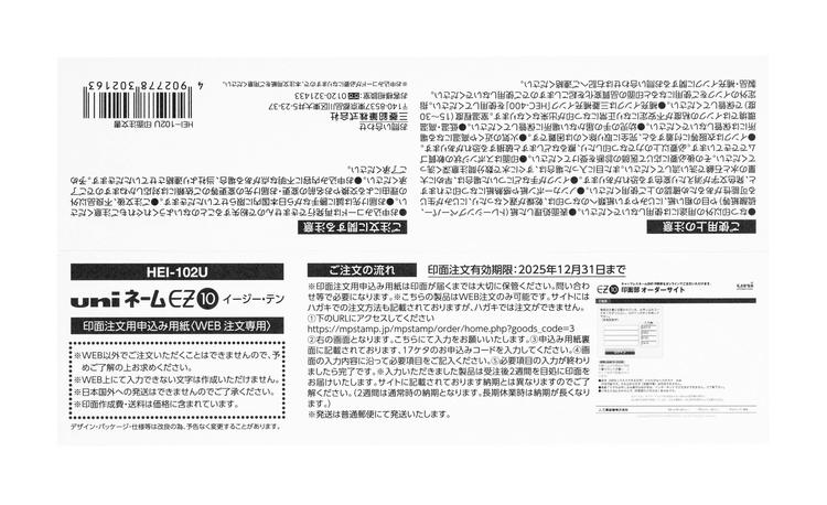 「 uniネーム EZ10イージーテン 印面注文書 HEI-102U 」は2025年12月31日(水)受注分をもちまして