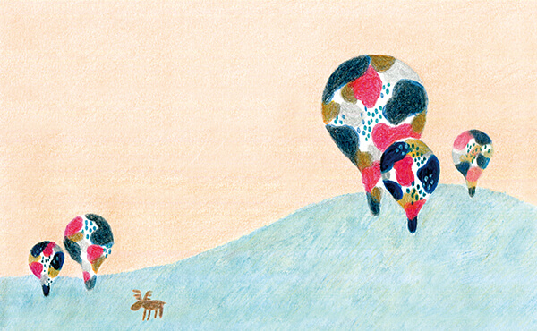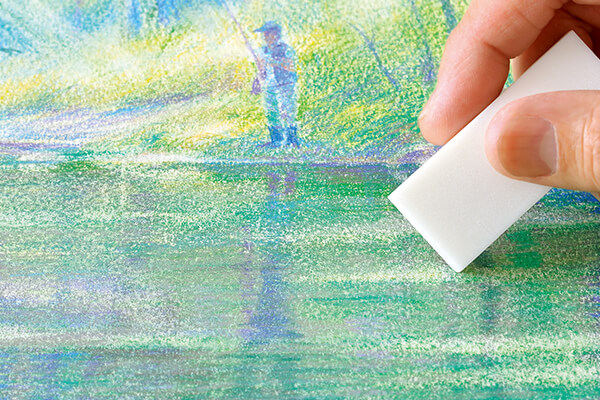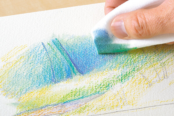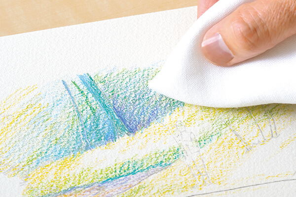 こすった上から更に消せる色鉛筆を重ねると、パステルタッチの質感になります。