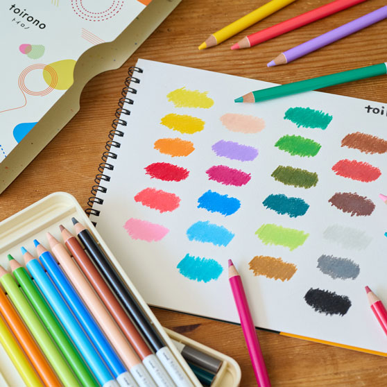 toirono(トイロノ)は、小さなお子さまから大人の趣味まで幅広くお使いいただける発色の良い色鉛筆です。