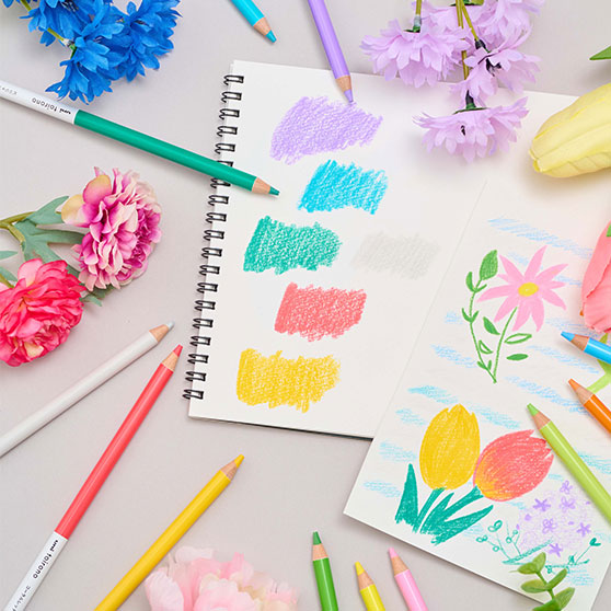 しっとりやわらかな書き心地で、軽い力でも発色良く描けます。