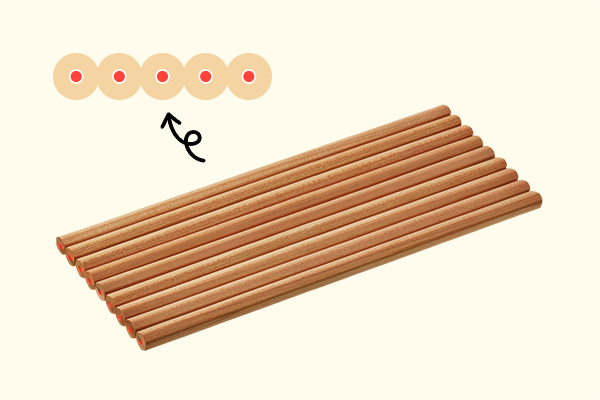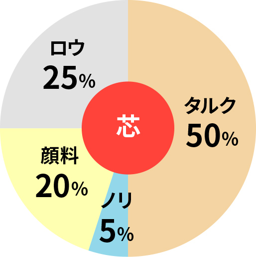 普通のえんぴつの芯(しん)と違って炉(ろ)で焼くこともないので、やわらかです。