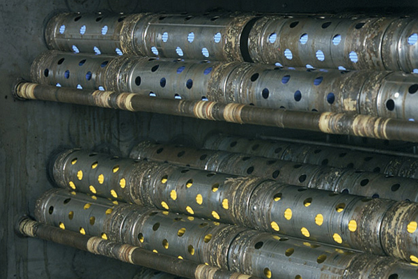 4 かわかす芯(しん)を筒(つつ)に入れて50℃の乾燥機(かんそうき)の中で、平均70時間ほどかわかします。