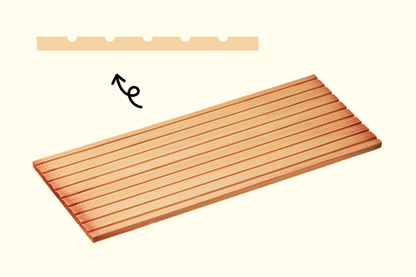 7 板にみぞをつける長さ185ミリ、幅70ミリ、厚さ5ミリのスラットに9本のみぞをつけます。