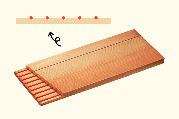 9 板を重(かさ)ねるもう1枚のスラットを重(かさ)ねて、はり合わせます。