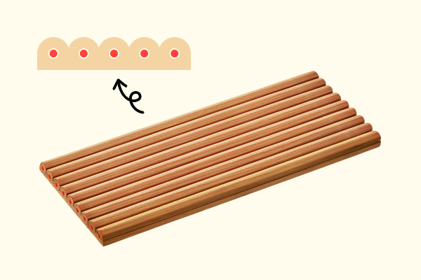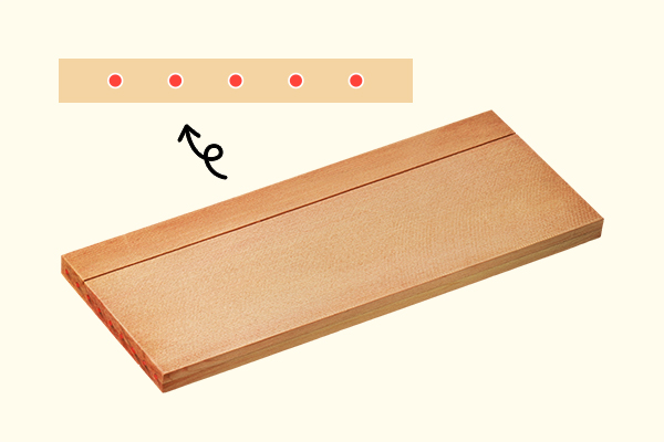 6 板を用意するえんぴつの原料(げんりょう)としてよいのは、きめがこまかくて、ふしがなくて、木目(もくめ)がまっすぐな木です。